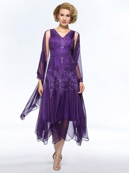 2017 New Elegant Purple Mother Of Bride Groom Dresses V Neck