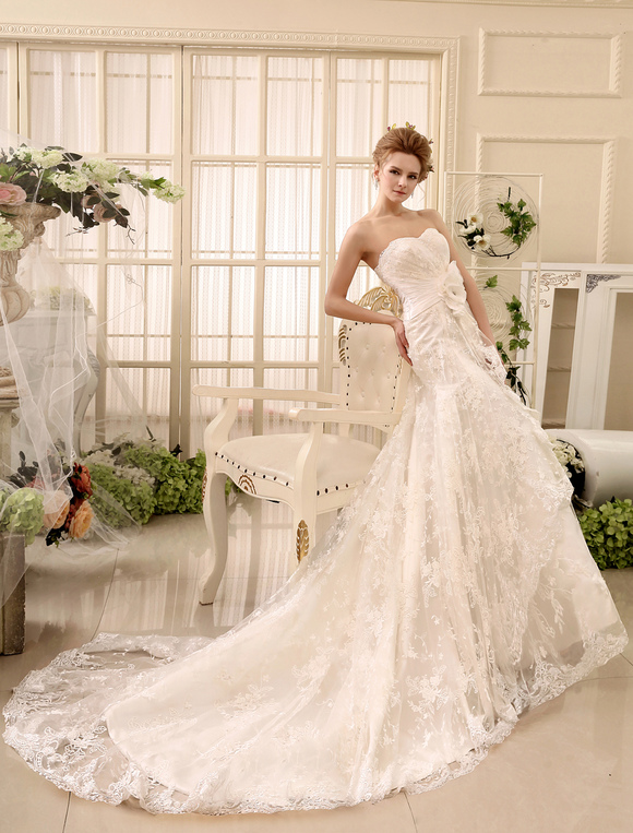 Wedding Dresses Strapless Lace Bridal Gown Sweetheart Neckline