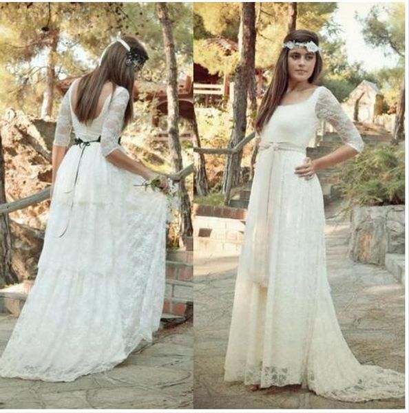 Vintage Square Neck Wedding Dresses Country Style Backless Lace