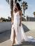 Ivory Lace V Neck Open Back Mermaid Beach Wedding Dress Vq