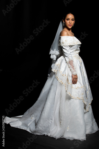 Lovely Asian Beautiful Woman Bride In White Wedding Gown Dress