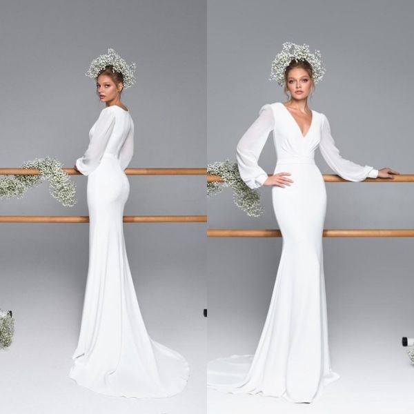 2020 Vintage Boho Wedding Reception Dresses Deep V Neck With Long