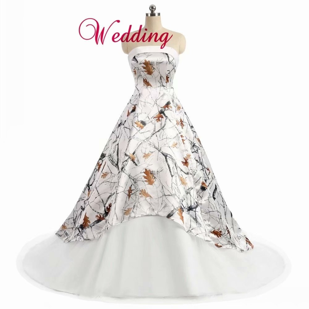White Camo Ball Gown Wedding Dresses Strapless Bride Dress Bridal