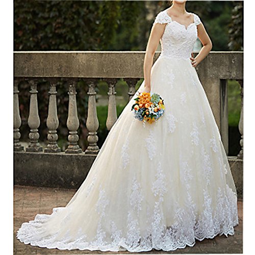Rightbride Women S Ivory Luxury Lace Cathedral Train Ball Gown