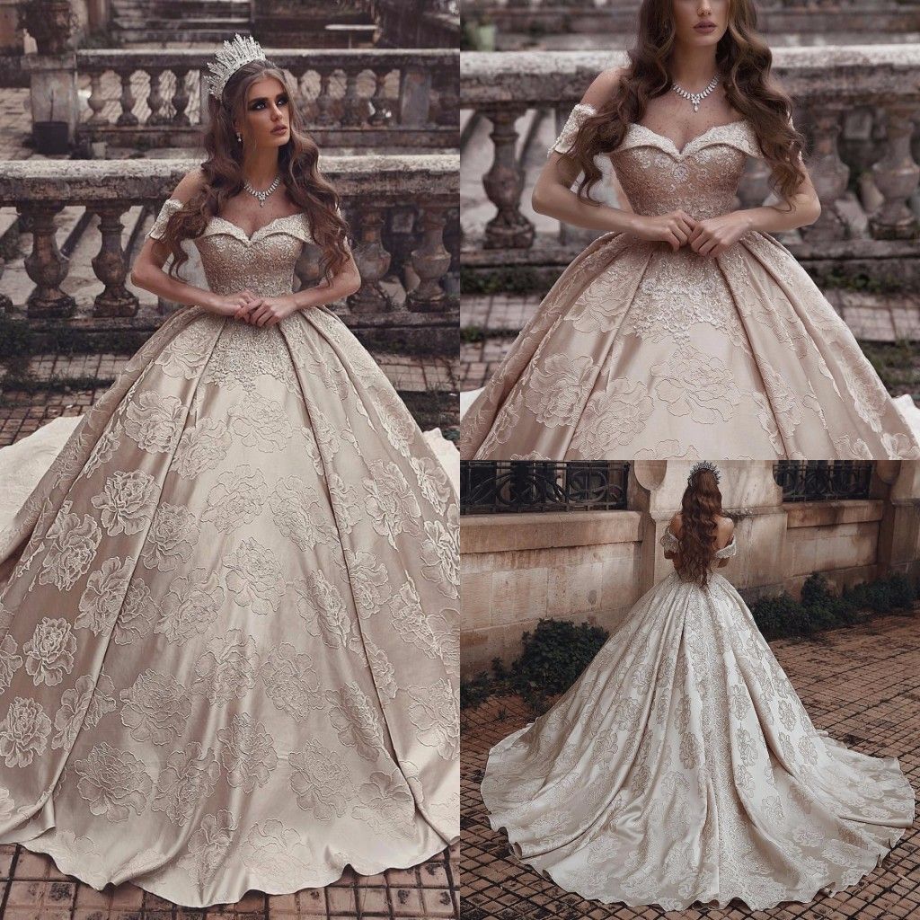 Dubai Arabic Style Luxury Champagne Ball Gown Wedding Dresses 3d