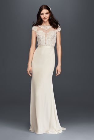 Cap Sleeve Crepe Wedding Dress With Plunge Bodice David S Bridal