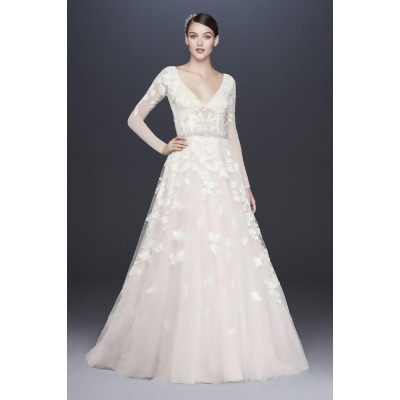 Illusion Sleeve Plunging Petite Wedding Dress Style 7swg820 From