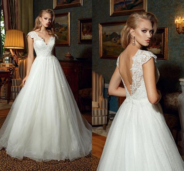Discount Vintage Garden Wedding Dresses V Neck Backless A Line