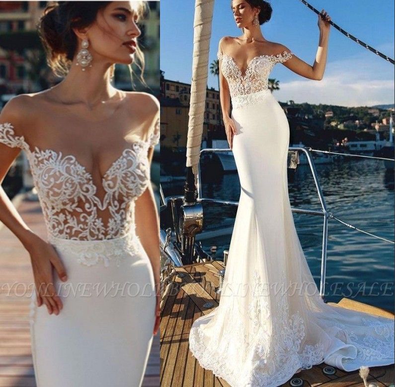 Romantic Lace Mermaid Wedding Dresses 2019 Capped Sleeves Sheer