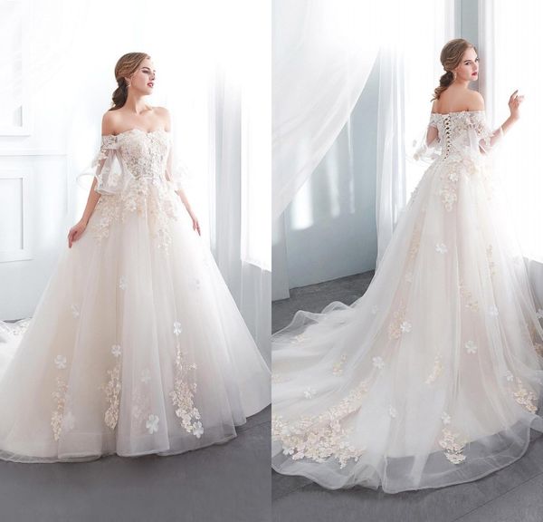2019 Romantic Designer Off The Shoulder Light Champagne Wedding