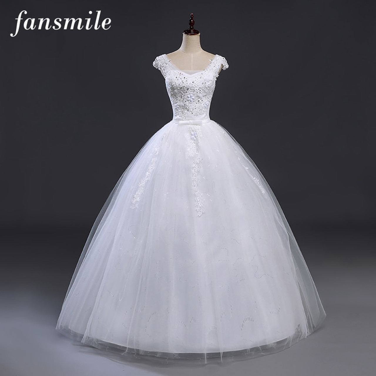 Fansmile Bridal Ball Gowns Plus Size Lace Up Wedding Dresses 2019