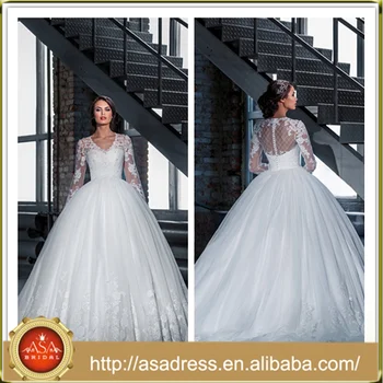 Lb19 High Quality Sexy V Neck Button Back Lace Long Sleeve Ball