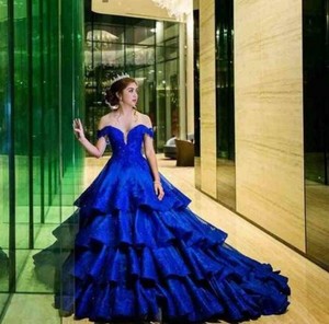 Stylish Royal Blue Wedding Dress Gorgeous Strapless Ball Gown