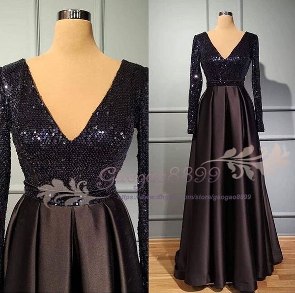 2019 Black Elegant Wedding Evening Gowns With Sequined Top Floor