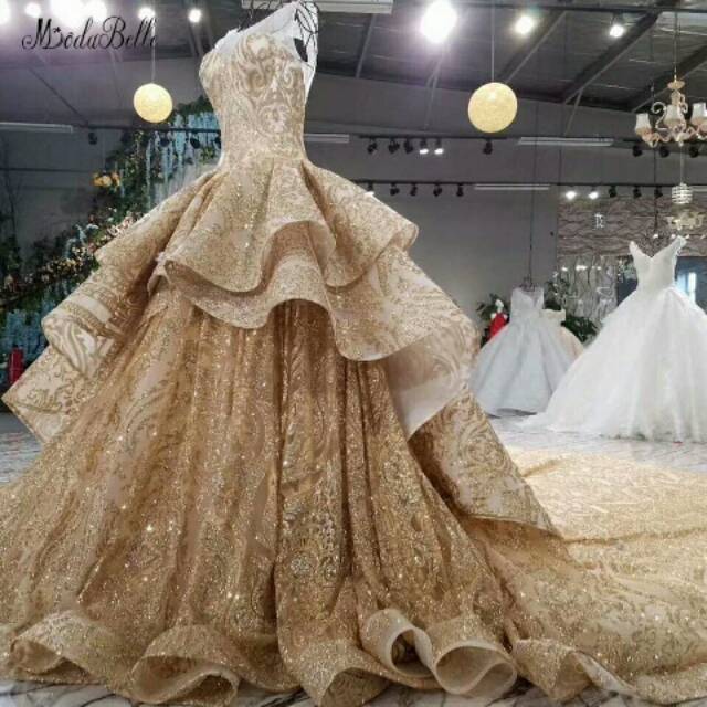 Gaun Murah Gold Wedding Dress Muslim Modabelle Luxurious Elegan