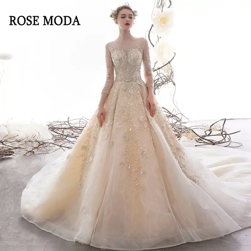 Rose Moda Long Sleeves Fitted A Line Wedding Dress Lace Bridal