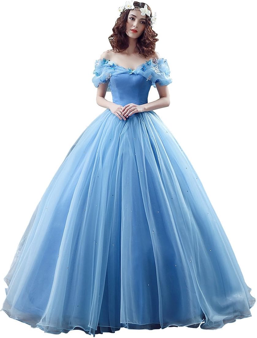 Princess Blue Ball Gown Off Shoulder Cinderella Dress