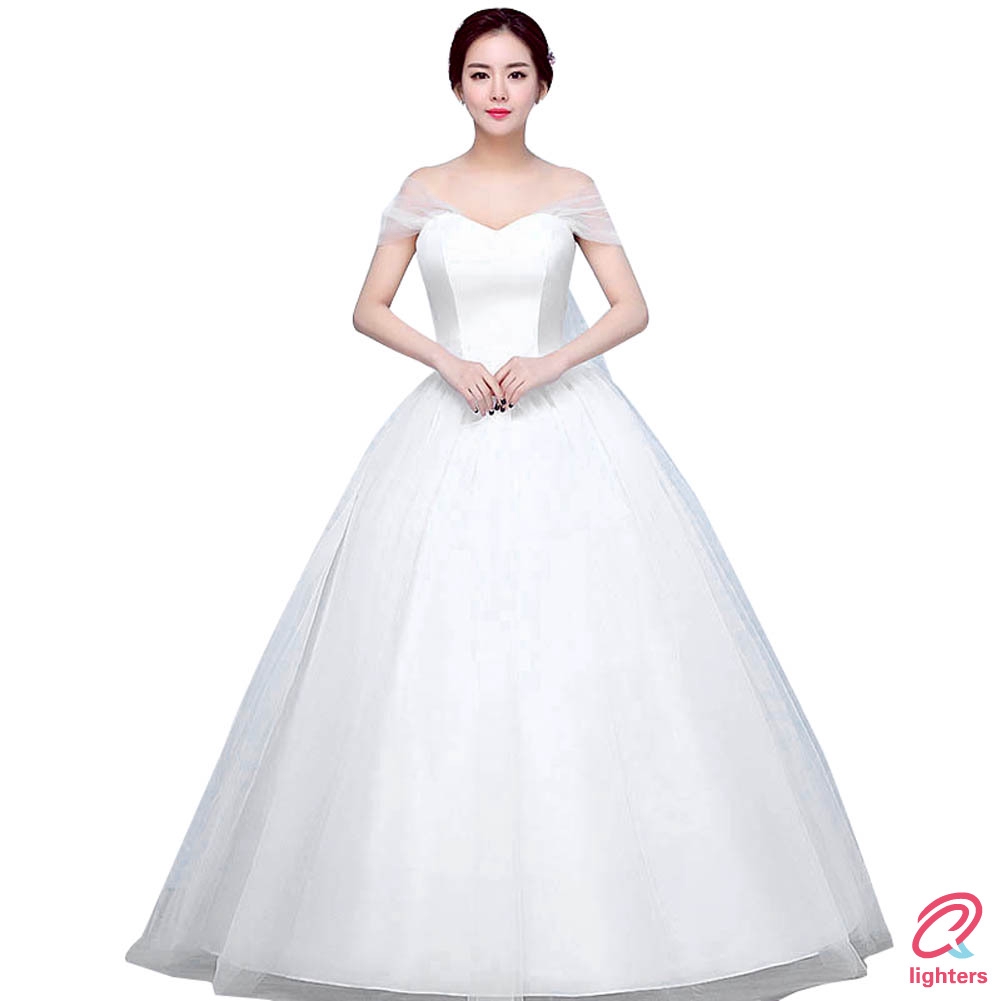 Lt Women Sexy Ball Gown Dress White Yarn Lace Slash Neck Princess