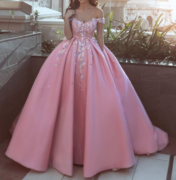 Pink And White Wedding Dress Ball Gown 3d Blue Flowers On Satin