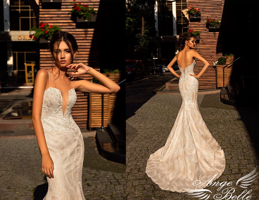 Bohemian Lace Skinny Wedding Dress Embroidered Slinky Mermaid