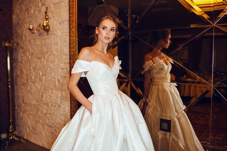Stunning A Line Wedding Dress Taffeta Bridal Dress Ball Gown Etsy