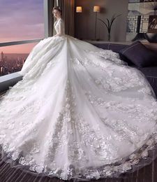 2019 Vintage Cathedral Train Lace Ball Gown Wedding Dress Luxury