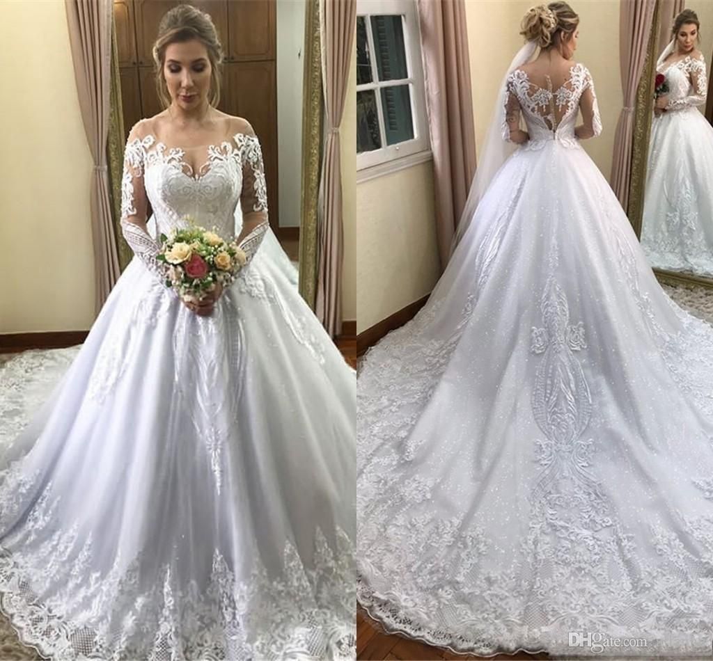 2019 Arabic Long Sleeves Ball Gown Wedding Dresses Off Shoulder