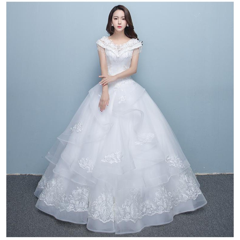 Gaun Pengantin Simple Sweet Large Size Lace Korean Wedding Dress