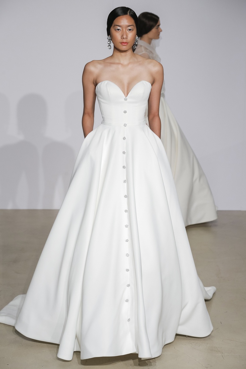 A Line Wedding Dress With Slit Satin Wedding Dress With Pockets 12061